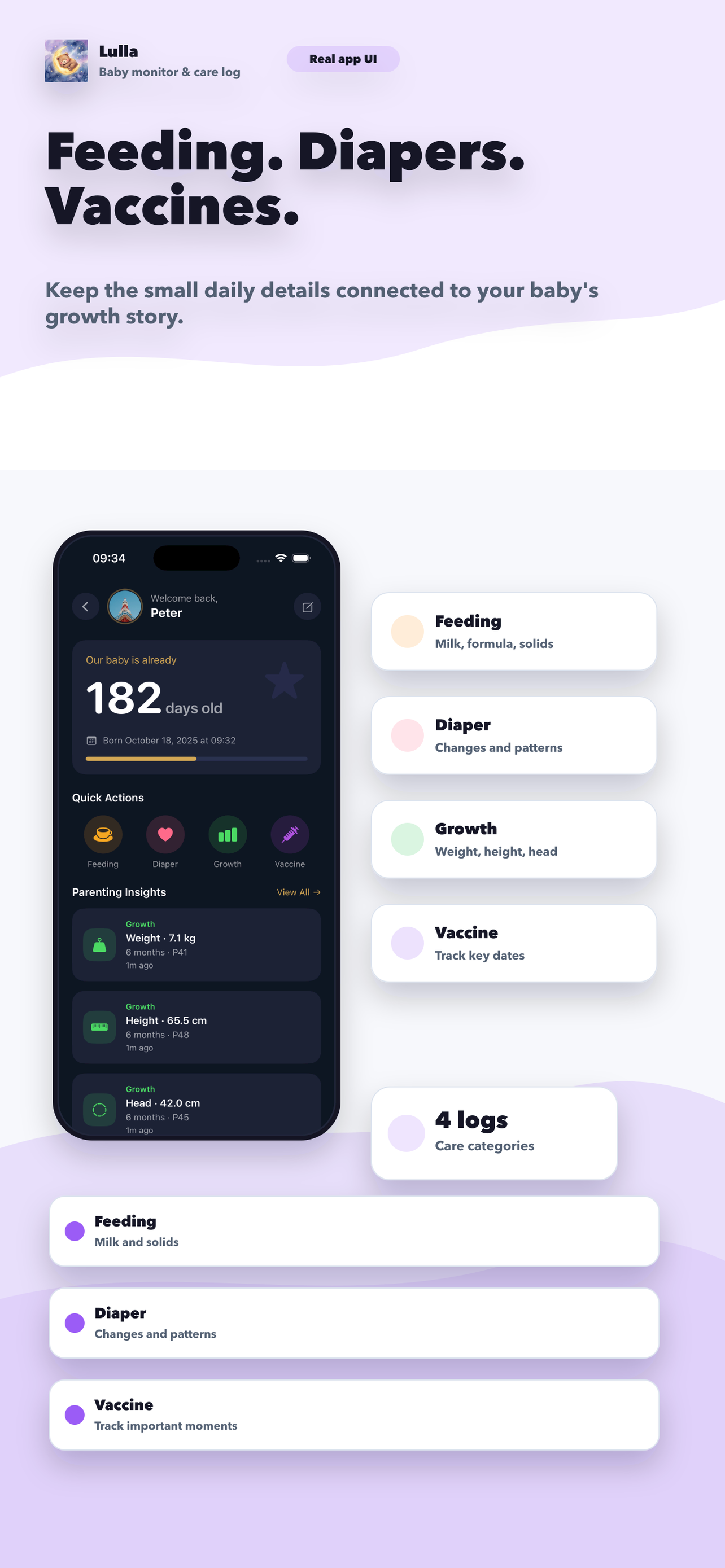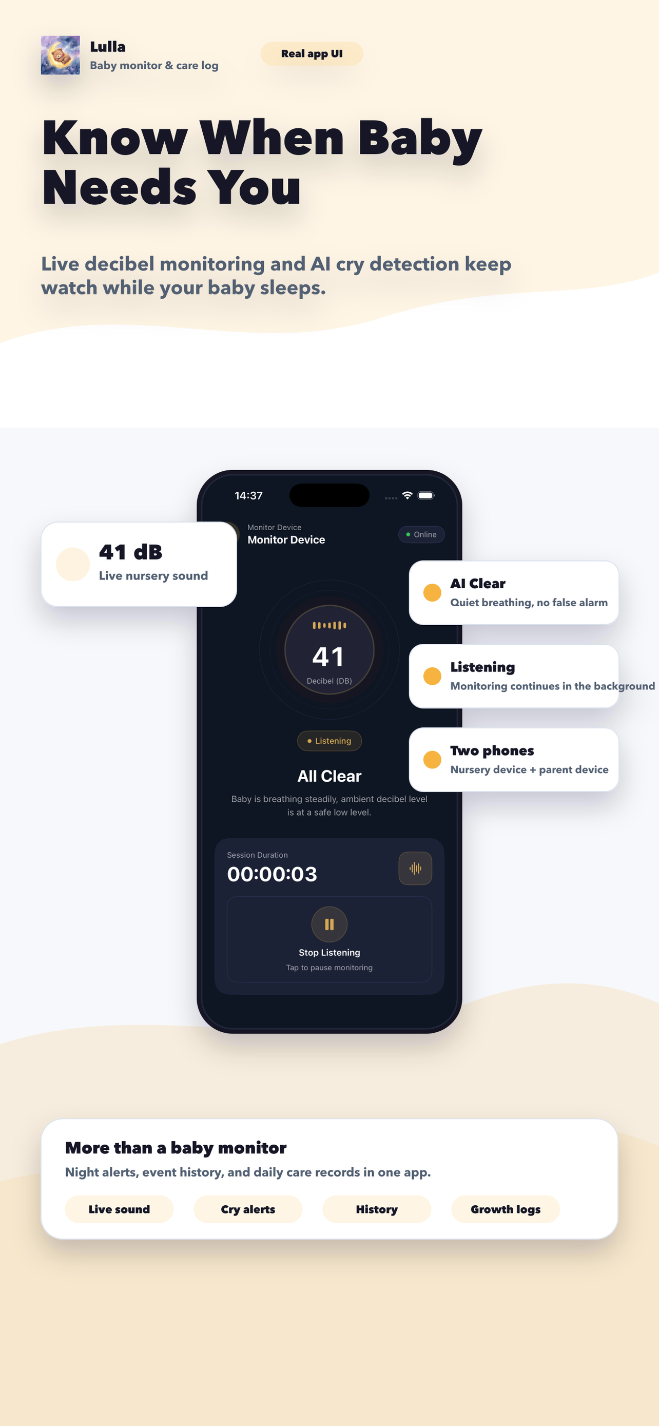 Lulla is built around what exhausted parents actually need: faster cry awareness, cleaner daily records, and fewer tools fighting for attention.